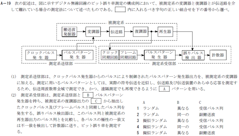・図に示すデジタル無線回線のビット誤り率測定の構成例において、被測定系の変調器と復調器とが伝送路を介して離れている場合の測定法