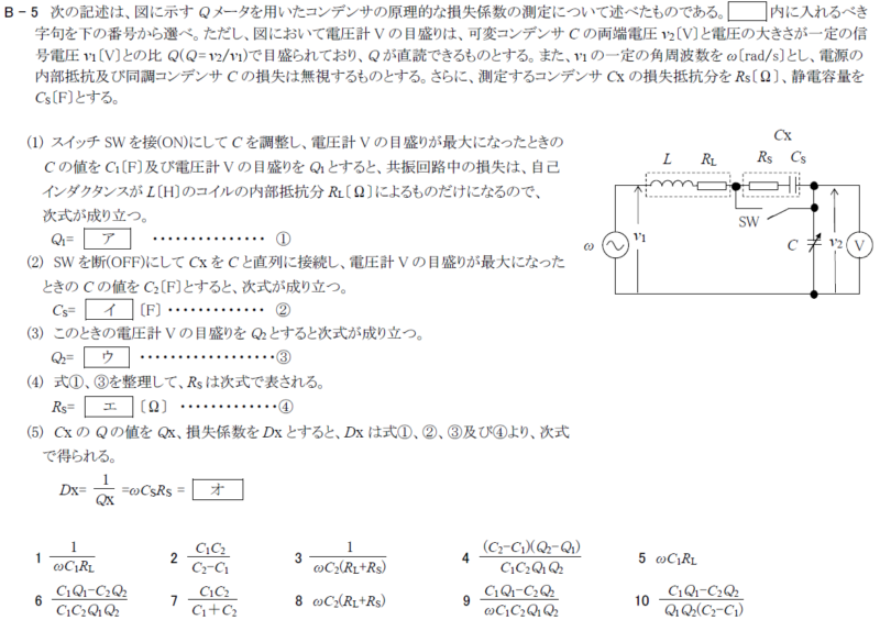 エ:\(\frac{C_1Q_1-C_2Q_2}{ωC_1C_2Q_1Q_2}\)   エーッ(エ)と驚く分母の5文字なが!