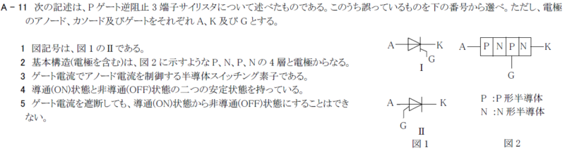 エ 2:このサイリスタの基本構造(電極を含む)は、図1に示すようなP、N、P、Nの4層からなる。