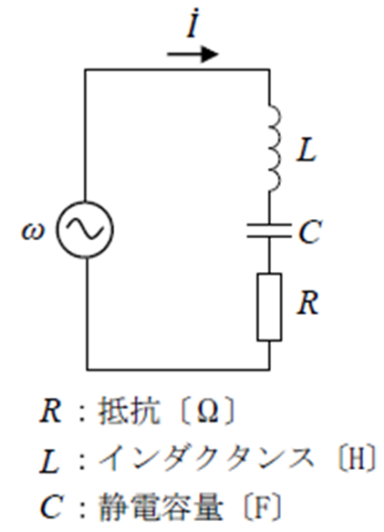 この回路のインピーダンスŻ〔Ω〕は、角周波数をω〔rad/s〕とすれば、次式で表される。