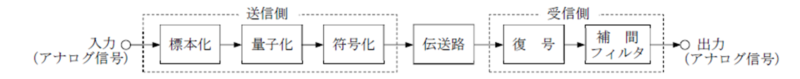 (1) 標本化とは、一定の時間間隔で入力のアナログ信号の振幅を取り出すことをいい、標本化周波数が入力のアナログ信号の最高周波数の( 2倍 )の周波数より高いとき、標本化して得たパルス列から元のアナログ信号を復元できる。