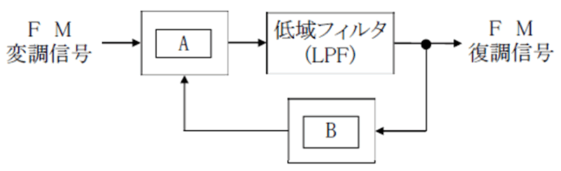 無線工学 5無線送受信装置 図は、位相同期ループ(PLL)を用いた周波数変調(FM)波の復調器の原理的構成例である。