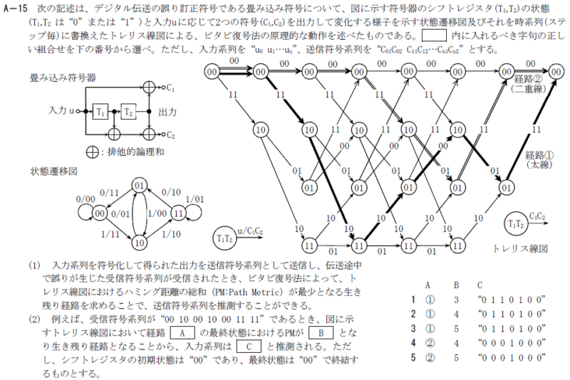 ・受信符号系列 “00 10 00 10 00 11 11” ←(2)の問題文より
