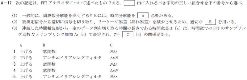 ウ 2 移動通信で用いられるバースト状の信号など、限られた時間内の信号を解析できない。 できる。