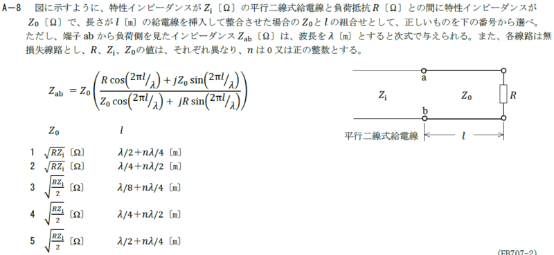 2 \(\sqrt{RZ_i}\)[Ω] \(λ/4+nλ/2\)[m]