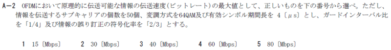 OFDMにおいて原理的に伝送可能な情報の伝送速度(ビットレート)の最大値